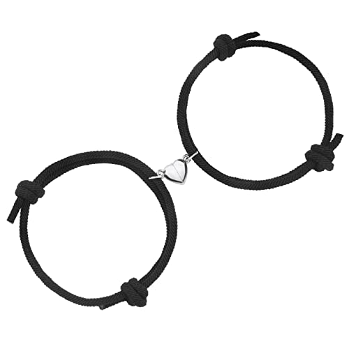 Aucuu Magnetiska Armband för Par - Matchande Justerbart Handgjort Snöre Med Kärlek, Hjärta, Klocka - Present Till Pojkvän, Flickvän, Käresta - 1 Par, Rostfritt Stål