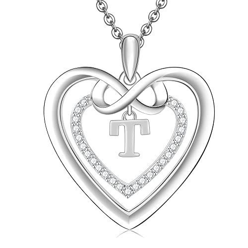 ULOMEOO Initialt Halsband För Kvinnor 925 Sterling Silver Hjärta Och Oändlig Bokstav T Hänge Med Kristall Smycken Present Mor Mormor Fru Dotter Flickvän
