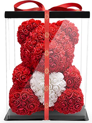 NADIR rosbjörn/blombjörn med presentförpackning, födelsedagspresent för kvinnor, present till flickvän på födelsedag eller årsdag, nallebjörn av rosor, gåva på bröllopsdag