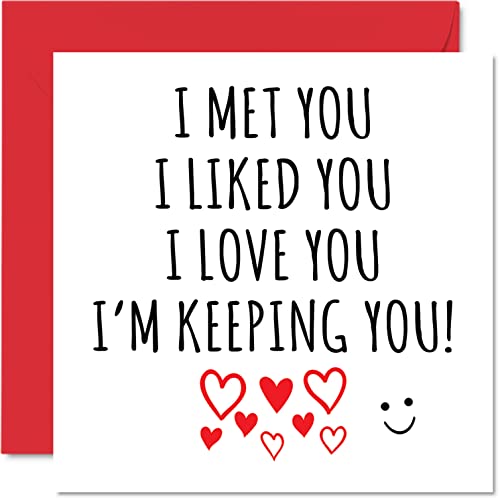 Roligt alla hjärtans dag-kort – 'I Met Liked Love Keeping You' – Alla hjärtans dag-present till flickvän pojkvän par, 145 mm x 145 mm gratulationskort, glad bröllop första årsdagen make fru partner gay hbt