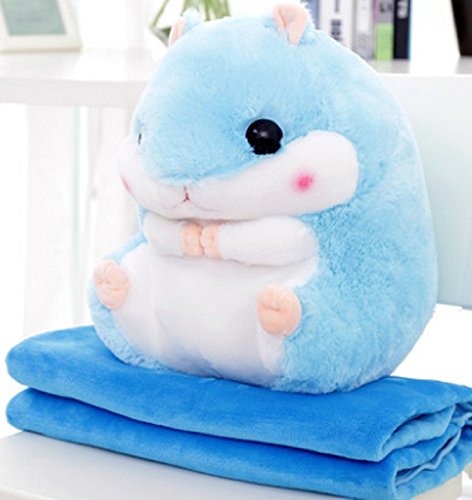 YunNasi 2 i 1 hamster, gosedjur, hamster, kudde med gosig filt, supersöt present för barn och flickvän, 50 cm x 30 cm (blå)