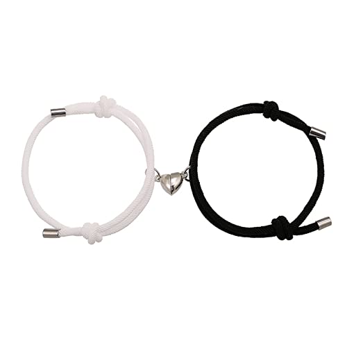 Aucuu Magnetiska Armband för Par - Justerbart Handgjort Snöarmband Med Kärlek Hjärta Klocka - Present Till Pojkvän Flickvän Älskare - 1 Par, Sten, Legering, Gallsten