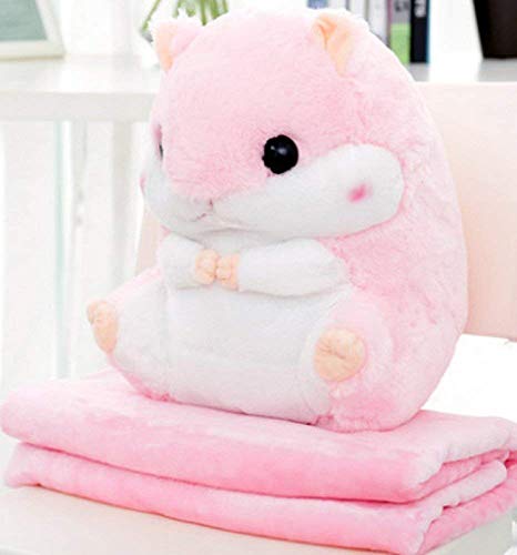 YunNasi 2 i 1 hamster, gosedjur, hamster, kudde med gosig filt, supersöt present till barn och flickvän (rosa)