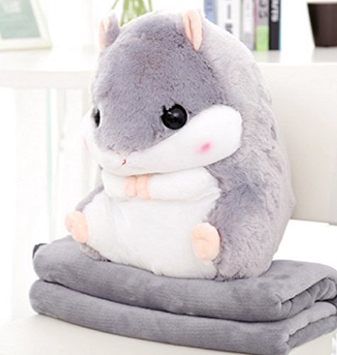 YunNasi 2-i-1 hamster, gosedjur, hamster, kudde med gosig filt, supersöt present till barn och flickvän (grå)