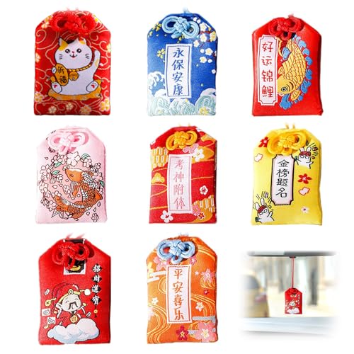 Omamori Charms 8 st Omamori berlock japansk lyckobringare välsignelse väska hänge lycka välsignelse väska omamori hälsa lyckobringare omamori charm present till familj flickvän bil hänge