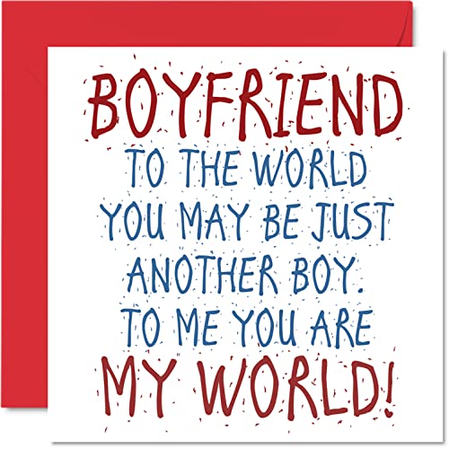 Härliga alla hjärtans dag-kort till pojkvän – pojkvän du är min värld – grattis på födelsedagskort från flickvän, födelsedagspresenter, 145 mm pojke alla hjärtans kort, gratulationskort present till