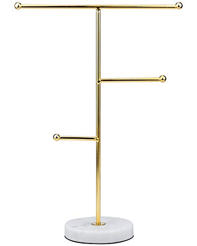 KARAA Smyckesställ i guld, smyckesträd, metallmarmor för halsband, armband, örhängen, ringar, accessoarer, smyckesförvaring, flickvän, present, 18,5 x 7,8 x 26 cm