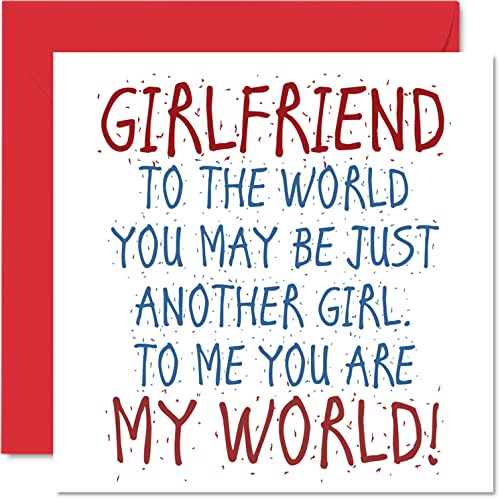 Härliga alla hjärtans dag-kort till flickvän – flickvän du är min värld – grattis på födelsedagskort från pojkvän, födelsedagspresenter, 145 mm flicka alla hjärtans kort, gratulationskort present till