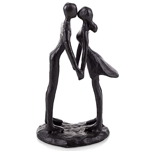 Sziqiqi Gjutjärn Kyssande Par Staty Modern Dekorativ Statyett Romantiska Skulpturer Prydnad, Svart Metall Abstrakt Figur Jubileumsbröllopsminnespresent Present till Henne Kvinnor Flickvän Brud Dam Par Älskare