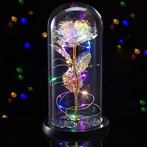 Galax rosgåvor för kvinnor, skönhet och odjuret ros i glas, glasros färgglad present till flickvän födelsedag, årsdag, jul, alla hjärtans dag, mors dag unika gåvor