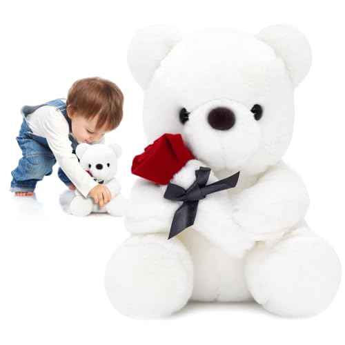 Zinueen Rosor Nallebjörn 23 cm, Gosedjur, Plyschnallebjörn, Alla Hjärtans Dag-Gåva Till Flickvännen, Mjuka Plyschbjörnar för Present Flickvän Jul, Födelsedag (vit)