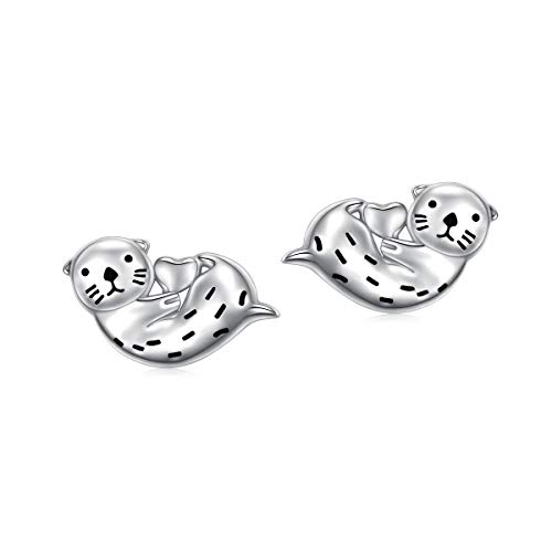 Seeotter örhängen, DAOCHONG 925 Sterling silver söta djur sjöotter örhängen damer smycke present till dotter, fru, flickvän och dig, Silver