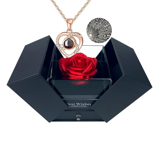 Handgjord konserverad ros presentförpackning med Forever tvål ros och kärlek halsband på 100 språk, förtrollad blomma present till flickvän mamma kvinna på årsdagen alla hjärtans dag mors dag