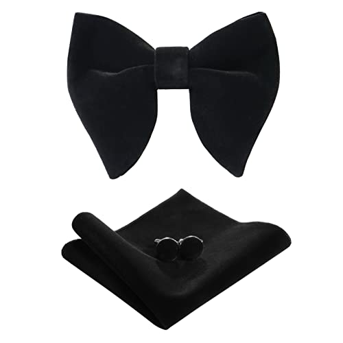 PACGOTH Fliege für Herren, vorgebundene Fliege, Vintage-Stil, Smoking, übergroße Samt, Fliege, Manschettenknöpfe, Einstecktuch, Sets mit Geschenkbox, schwarz, Groß