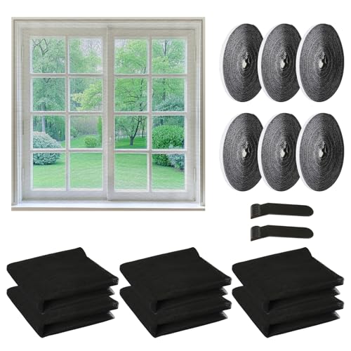 Insektsskärmsfönster 130 x 150 cm, 6 stycken insektsskydd fönster, insektsnät för fönster, självhäftande myggnät för fönster med kardborreband, självhäftande, svart
