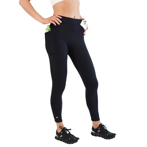 FlipBelt dam ankel hög midja leggings med fickor, löparbälte leggings, M, svart