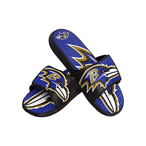 FOCO NFL Baltimore Ravens herr sport dusch gel glid flop sandaler sport dusch gel flip flop sandaler, färgblock stor logotyp, XL (13–14) (FFSSNFCBBLGGEL)
