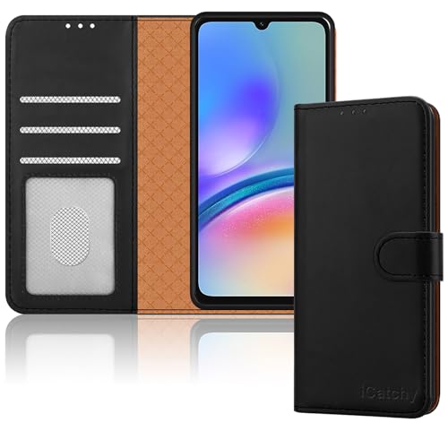 iCatchy för Samsung Galaxy A05S fodral läder plånbok bok flip folio stativ vy magnetiskt skydda RFID-blockerande fodral kompatibel med Samsung A05s telefon (svart)