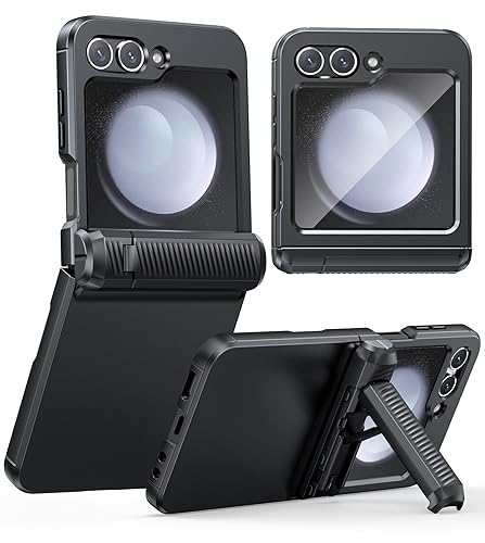 FNTCASE för Samsung Galaxy Z-Flip-5 fodral: Drop Protection Samsung Flip 5 fodral stötsäkert tung matta robust telefon gångjärn skydd mobiltelefonfodral med stativ svart, ZDGPY-SZFLIP5
