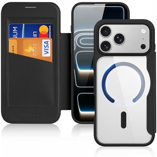 DUX DUCIS Magnetfodral för telefon iPhone 17 Pro fodral kompatibelt med MagSafe, transparent rygg stötsäker repbeständig flip-läderfodral för iPhone 17 Pro, Svart