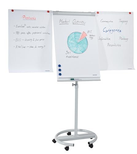 FRANKEN Flipchart, skrivbar, magnetisk, med 2 sidoarmar, trebensstativ, 68 x 105 cm, justerbar höjd, inkl. pappershållare och pennfack, ECO standard, F2100/N
