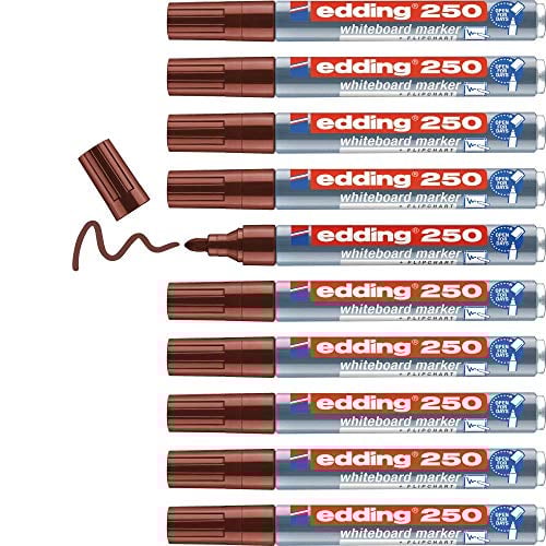 edding 250 markörer för whiteboards, Brun, 10 Kulspetspenna, Rund spets 1,5-3 mm, penna för whiteboard, torr radering, Whiteboard, Flipchart, Anteckningsbräda