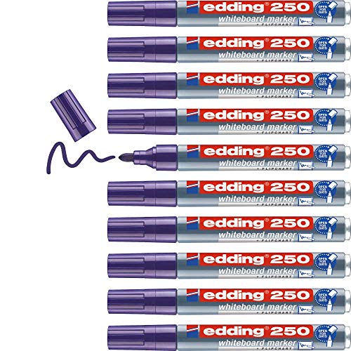 edding 250 markörer för whiteboardtavlor - violett - 10 pennor - rund spets 1,5–3 mm - whiteboardpenna för whiteboard, kemtvätt - whiteboard, flipchart, anteckningsblock