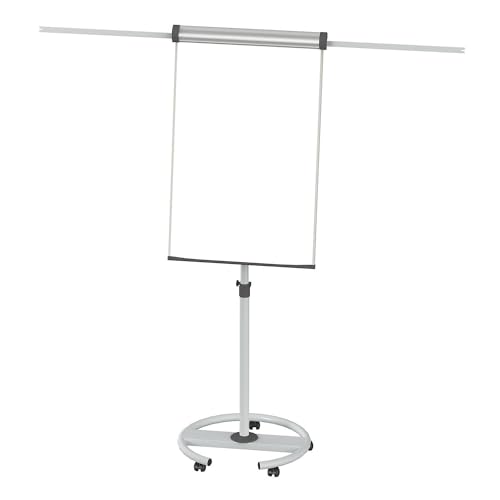 Maul Flipchart Office Mobil I Rollbar I Rundfot I Höjdjusterbar I Snabbväxling Blockhållare I 6375095, 1 St, Silver