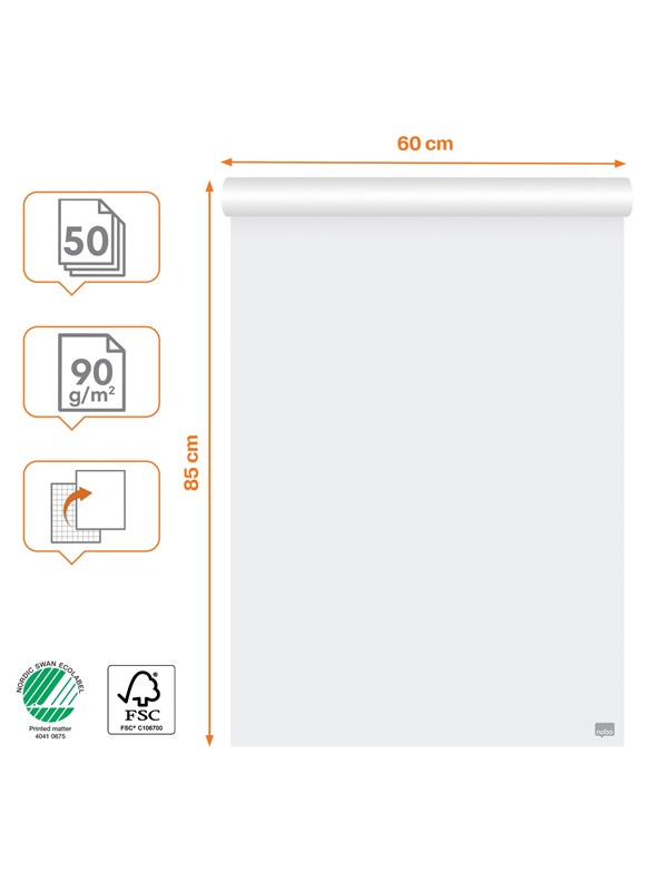 Nobo Premium Flipchart Recycled Paper Pad 600x890mm Reversible Plain or Gridded paper 50 Sheet 70gsm 1 Pack Rolled