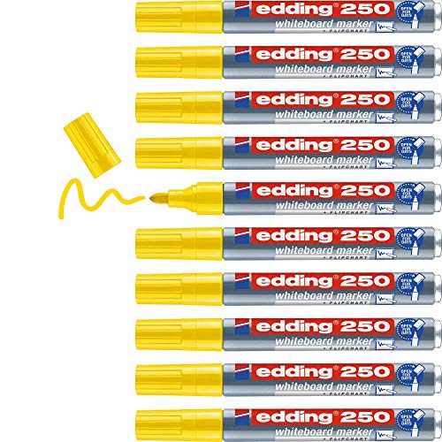 edding 250 markörer för whiteboardtavlor - gul - 10 pennor - rund spets 1,5–3 mm - whiteboardpenna för whiteboard, kemtvätt - whiteboard, flipchart, anteckningsblock