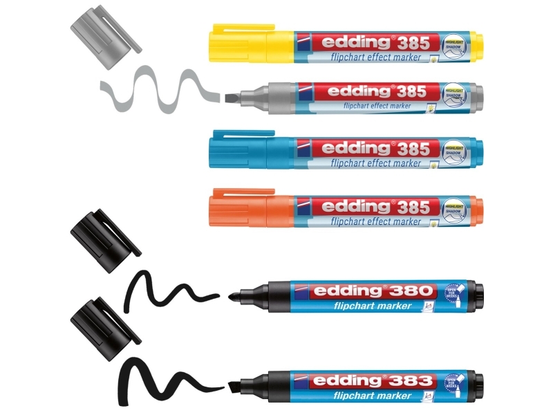Edding Colourful Flipchart Kit, Svart, Blå, Grön, Orange, Röd, Gul, Diverse, Blandade Färger, Glas, Strykjärn, Metall, Papper, Plast, Stål, Tyskland, Vattenbaserat Bläck