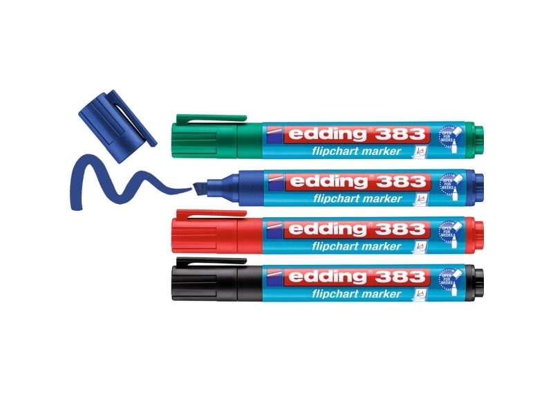 Edding 383 Flipchart - Markering - För Flipdiagram - Svart, Röd, Blå, Grön - Vattenbaserat Bläck - 1-5 Mm (Paket Om 4)