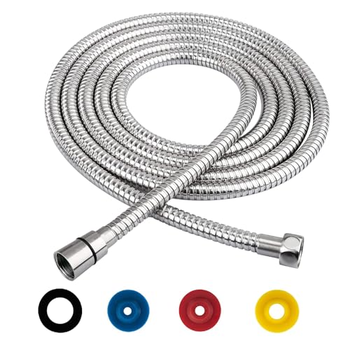GEFIRE Duschslang rostfritt stål 5 m vridskydd universell duschslang med 4 vattenbesparande flödesbegränsare standard 1/2 anslutning tryckbeständig värmebeständig silver