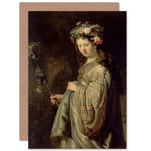 Artery8 Rembrandt Saskia som Flora gudinna fin konst gratulationskort plus kuvert tomt inuti