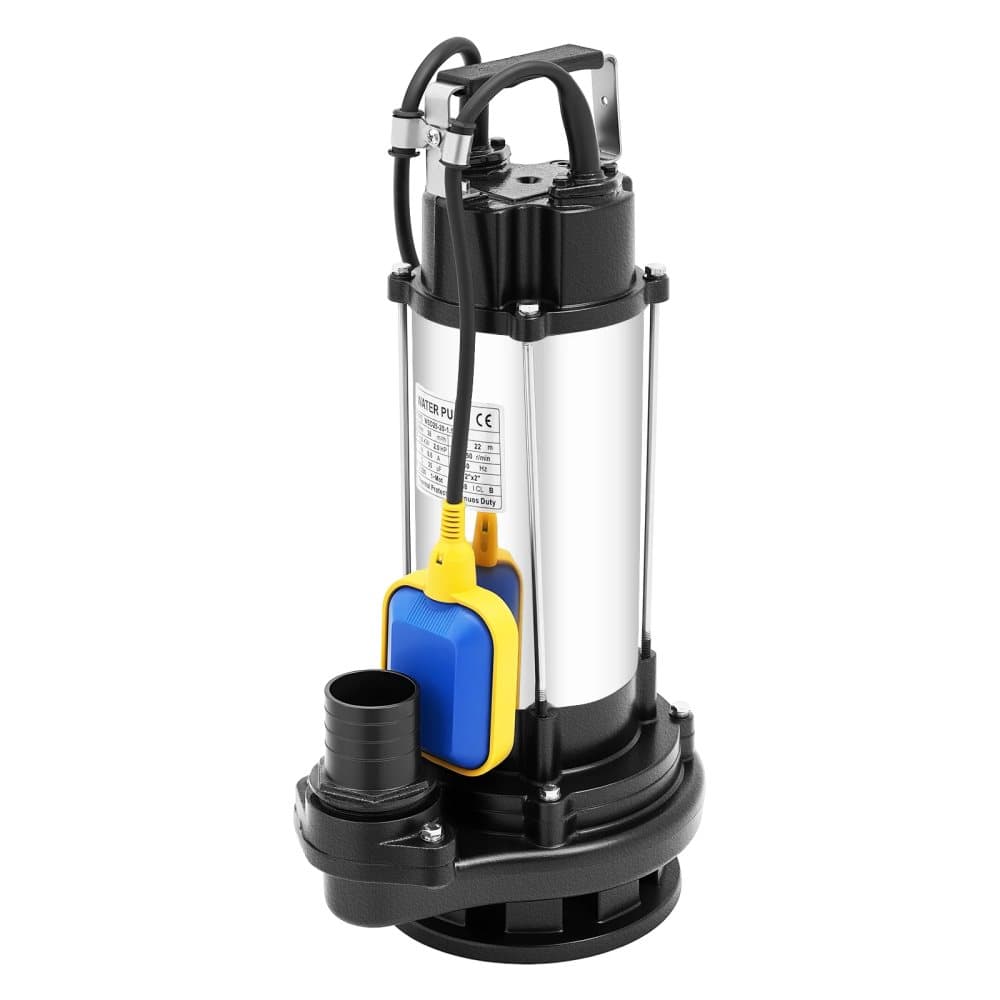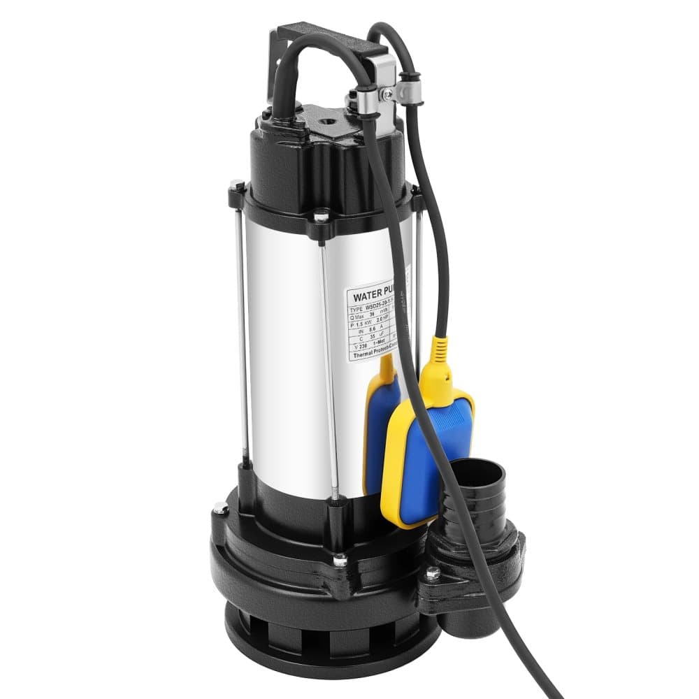 Smutsvattenpump - Dränkbar Pump - 1,5 kW, Rostfritt Stål, Flottörbrytare, 2850 varv/min, För Industri och Hem - Svart