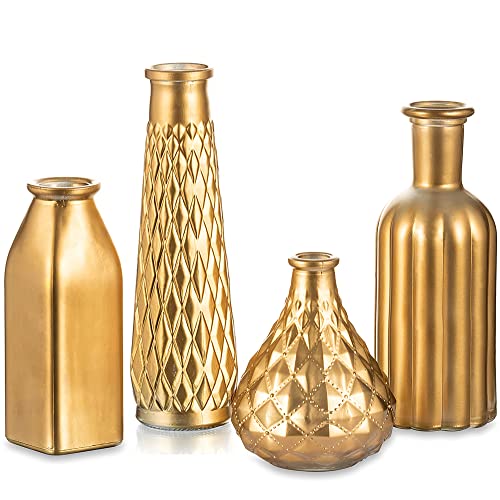 Hewory förgyllda glasvaser för blomma: Gold Bud Posy Vas Set med 4 för bröllopsmottagning Bordsdekorationer Heminredning 22/19,5/16/12,5 cm