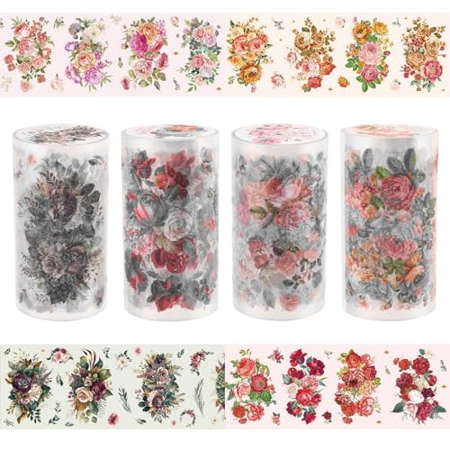 URROMA Flower clip up band set, 4 rullar färgglada PET-band blomma Washi-tejp maskerad tejp transparent dekorativ klistermärke