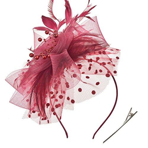 DRESHOW Fascinators Hatt Blomma Mesh Fjädrar på Pannband och Gaffel Clip Cocktail Teparty Huvudbonad för Flickor Kvinnor