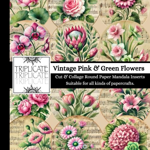 Vintage Pink & Green Flowers Cut and Collage Round Paper Mandala Inserts - Suitable for all kinds of papercrafts.: 24 double-sided matte pages of 8.5 ... 12 clip art images (4 of each) to fussy cut.