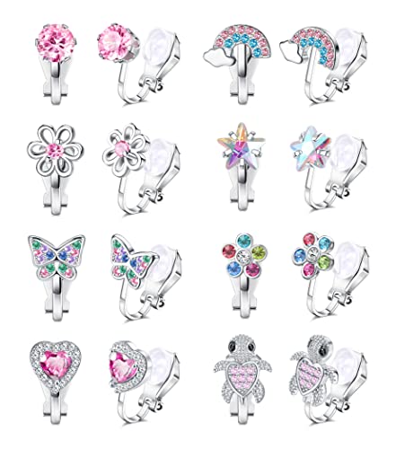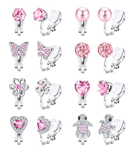 FIOROYAL 12 par barn Clip on örhängen för flickor Tonåring Söt hypoallergena glänsande fjärilshjärta Blomma Pärla Non Pierced Flerfärgad Rosa CZ Clip Örhängen Set