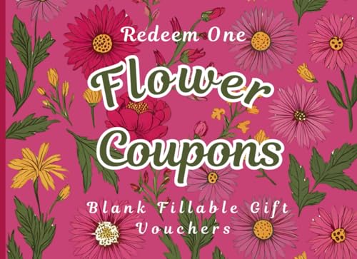 Flower Coupons: Blank Fillable Gift Vouchers. Floral Color Illustrated and Valid Forever. Great Gifts Treats Idea. DIY Fill In. Beautifully Designed and Unique. Clip Out Pages.