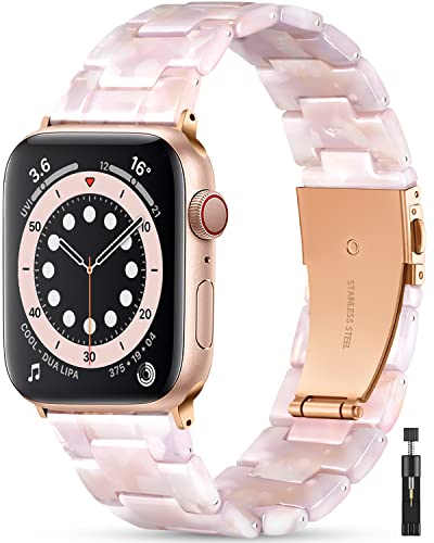 Upeak ersättningsarmband i harts kompatibelt med Apple Watch armband 41 mm 40 mm 38 mm för dam/herr, lätt ersättning för Apple Watch SE/iWatch Series 7/6/5/4/3/2/1, blomma rosa