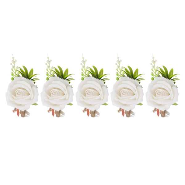 Bröllop Corsage Boutonniere Pin Set för brud och brudgum - 5 ST Vita konstgjorda blommor