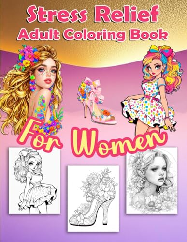 Stress Relief Adult Coloring Book for Women: A Therapeutic Cozy Coloring Book Featuring Cute Pin-Up Girls, Fashion Shoes With Flowers, And Moon Fairy ... Book - Fashion Coloring Book For Women
