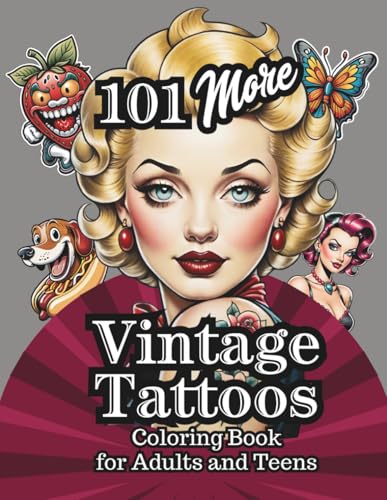 101 More Tattoo Designs Coloring Book for Adults and Teens: Classic Pin-Up Girls, Cartoon Animals, UFOs, Mermaids, Flowers, Celestial Images, and More
