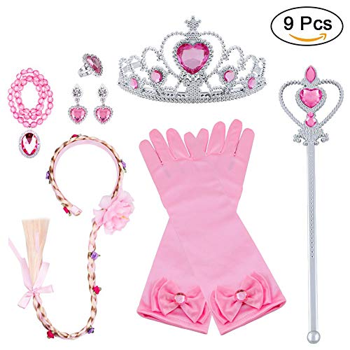 Vicloon Princess Dress Up Accessoarer Tjejer Tiara Magic Halsband Handskar för Cosplay Carnival Birthday Party(rosa)