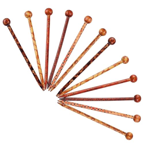 POFET 12 st trä hårnål kvinnors kinesiska hår pinne pin trä blomma mönster flicka