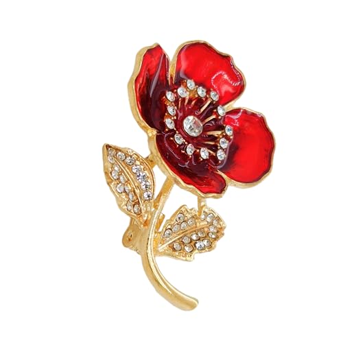 JEWELLBOX Röd blomma vallmo pin brosch - minnesdag medvetenhet - symbolisk gåva, En storlek, Metall