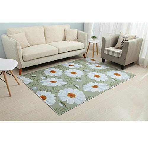 RUGMRZ Kortfattad icke-blekande mattor ljusgröna stora vita blommor design vardagsrumsmatta elegant soffbord matta grön 160 x 230 cm