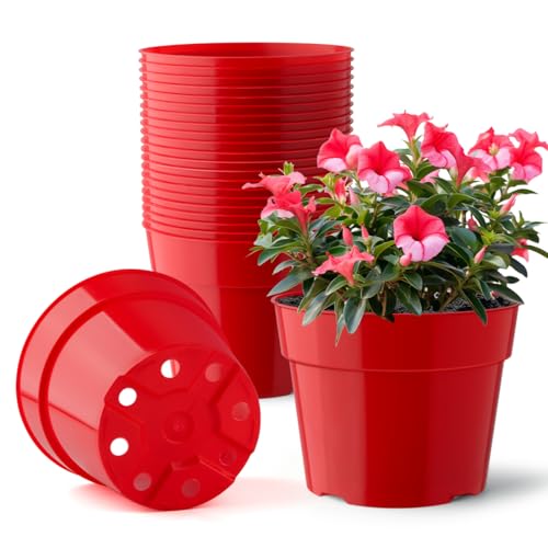RooTrimmer 15 cm/6 tum toppdiameter plastblomkrukor 20-pack ljusröd färg, 20 st vattenuppsamlande brickor, grytfat och 20 jordblocksnät (krukor + brickor + nät)